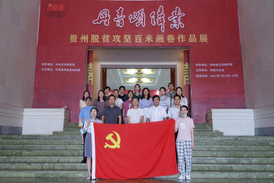 7月23日下午,民族文化宫博物馆党支部开展主题党日活动,组织党员集体参观“丹青颂伟业——贵州脱贫攻坚百米画卷作品展”。